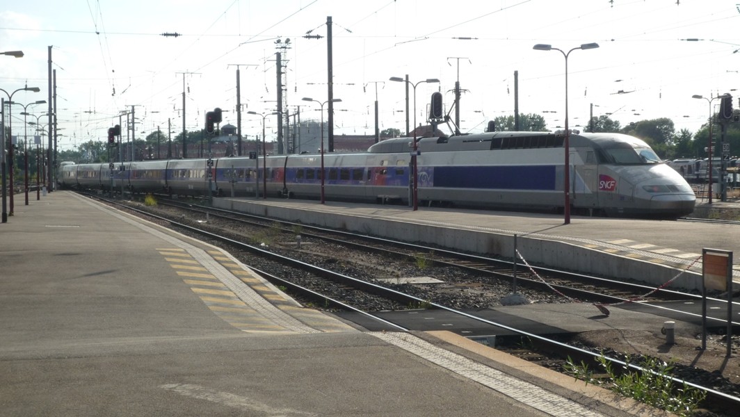 Gut halbe Stunde später fährt ein TGV POS - vermutlich aus Zürich - ein. Diese Züge fahren auch vier mal am Tag bis