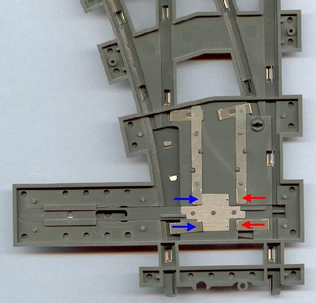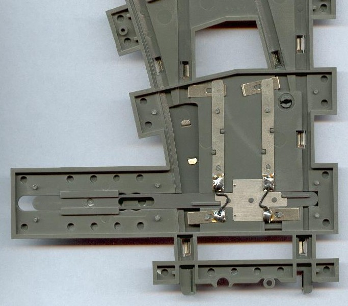 Fährt man Digital, so wie ich, ist eine denkende Weiche Blödsinn, da ich sowieso die Züge unabhängig voneinander schalten kann. Also muss die "denkende" Weiche in eine ganz normale Weiche umgebaut werden. Das geschieht mit Drahtbrücken. Da es doof aussieht, wenn man die Drahtbrücken außen macht und man die ganzen Kabel sieht, empfiehlt es sich die Weiche zu öffnen und die Drahtbrücken innen anzubringen.