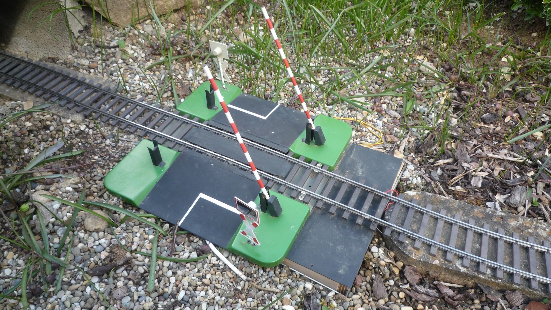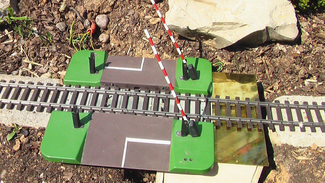 Zuerst möchte ich das Funktionsprinzip des Märklin Spur 1 Bahnübergangs 59950 erläutern. Der Bahnübergang