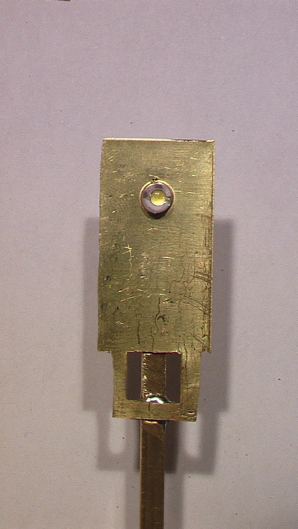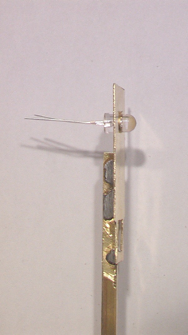Messingblech 0,5 mm (Art.-Nr. 297097), Messingvierkantrohr 4 x 4 mm (297640), Messingstab 1 mm (Art.-Nr. 297208) und LED weiß 5 mm (154309).