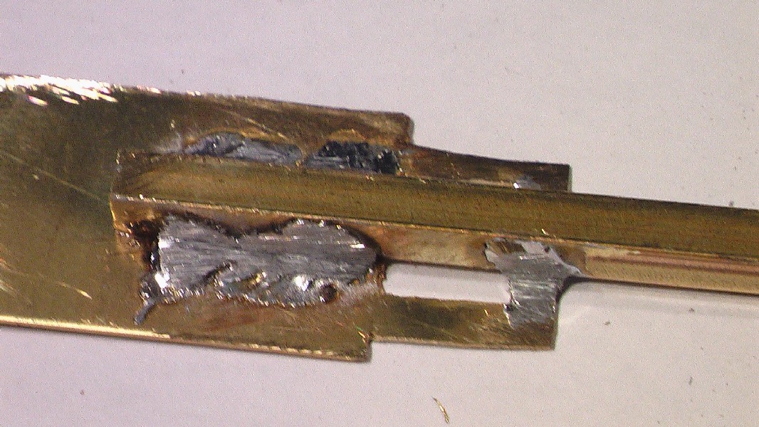 Dort setzt man den Messingstab ein und verlötet ihn.