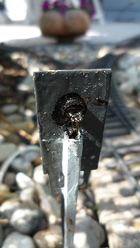 Für die Signalblende geht man folgendermaßen vor: Man sägt aus dem Blech ein kleines Stück aus. Dieses legt