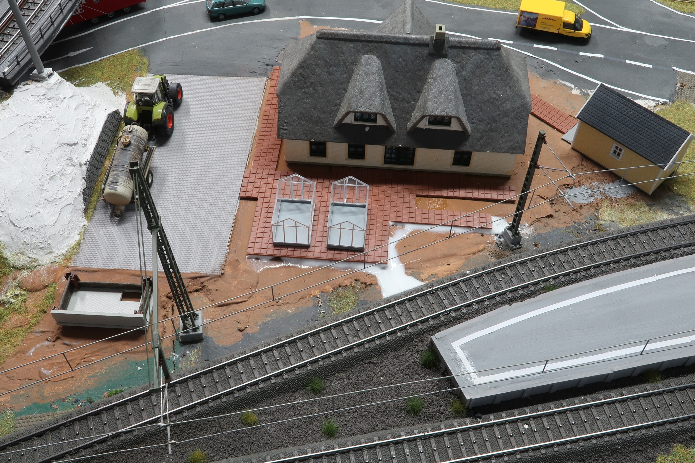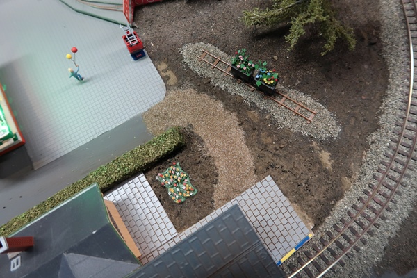 Die begrasten Flächen rund um den Bahnhof wurden mit Flock verfeinert.
