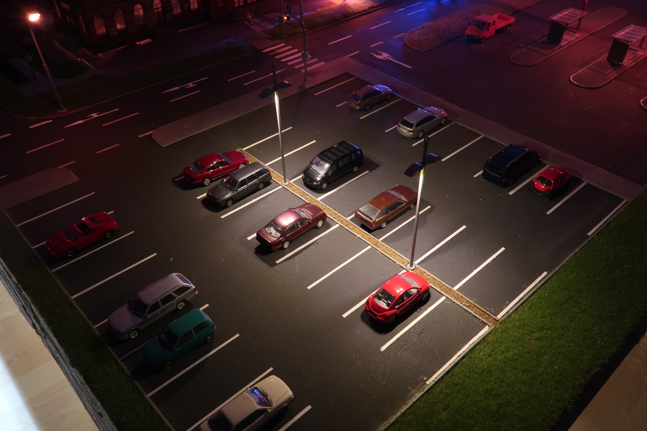 Nur noch zwei Lampen auf dem Parkplatz fehlen.