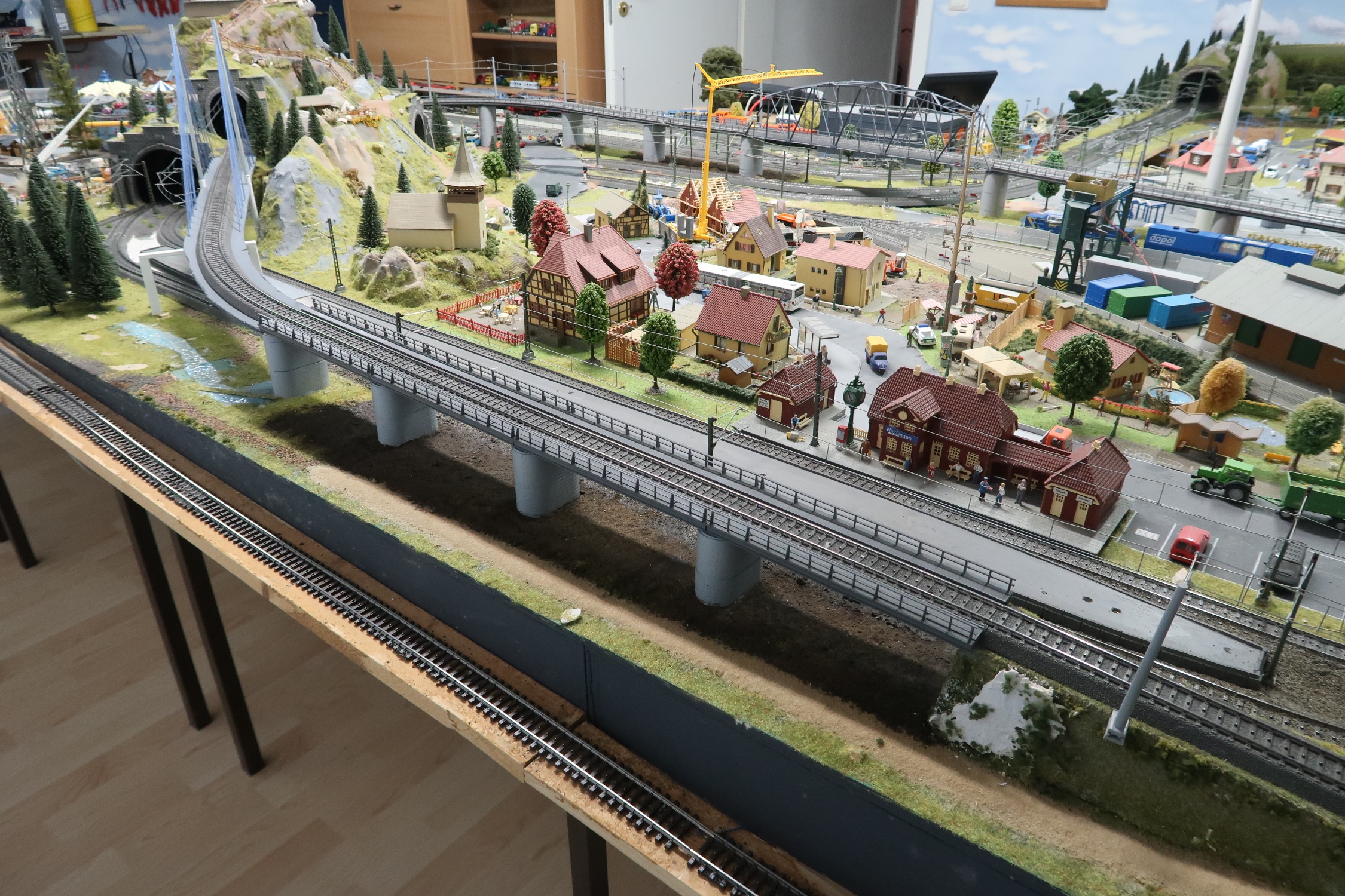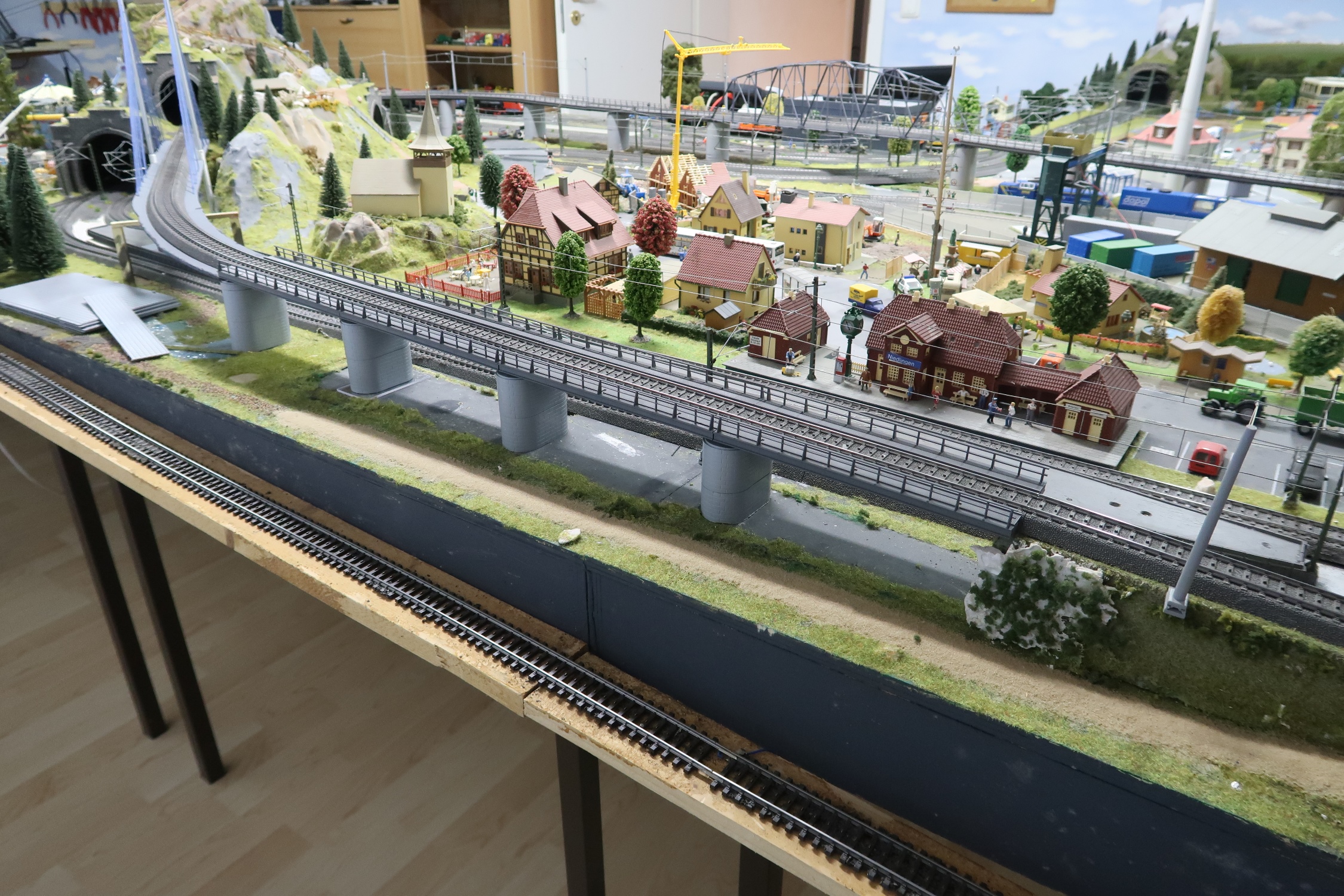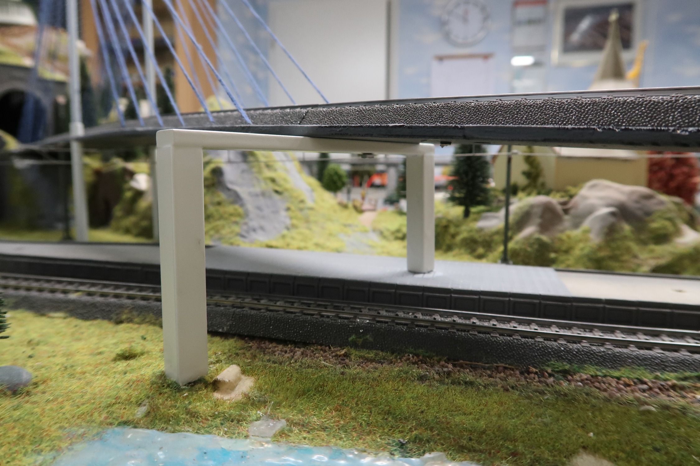 Die gerade Brückekonstruktion besteht aus Märklin Brückenelementen die perfekt zum C-Gleis passen.