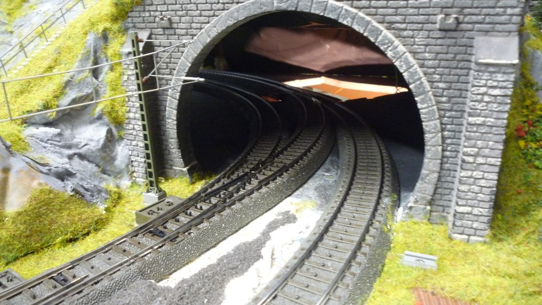 Neu ist ein Gleiswechsler im Bogen des zweigleisigen Tunnels. Er ermöglicht es einem ausfahrenden Zug vom