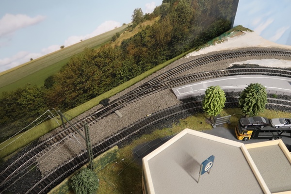 Für einen sauberen Abschluss zum Bahndamm sorgt ein Mauerelement von Noch.