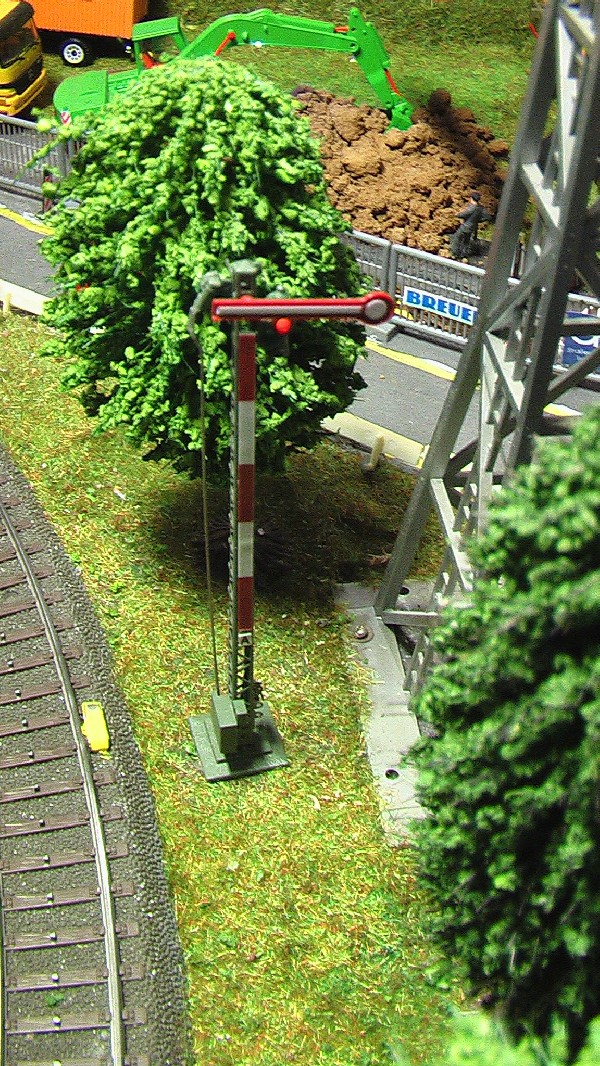 der Signalflügel dran. Hier musste ich selber herumprobieren, das gab die Anleitung nicht so deutlich wieder. Der Stelldraht ist silbrig, was zur restlichen Lackierung des Signals
