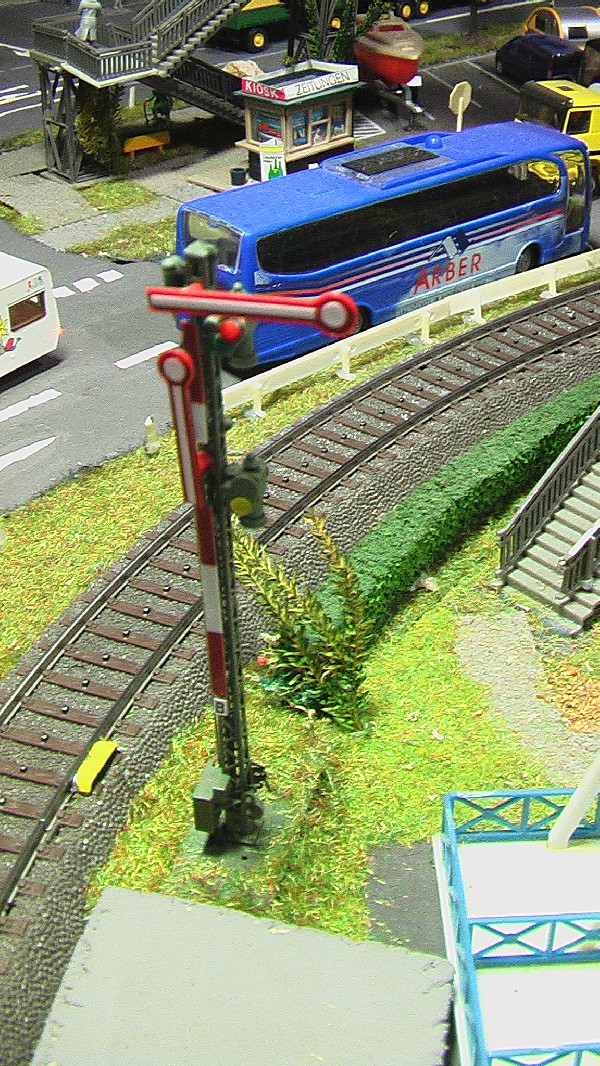 nicht passt. Ein Bastler kann den Draht auch noch anmalen, das habe ich jedoch nicht gemacht. Nach dem Bohren eines geeignet großen Loches steckt man das Signal ein und schließt