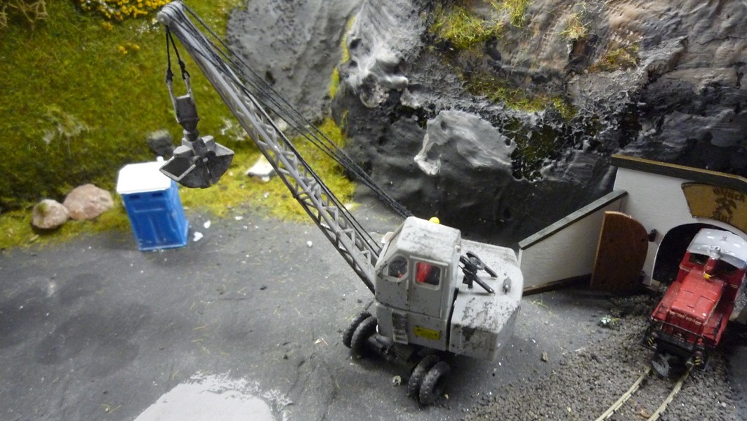 Im Drehpunkt des Baggeraufbaus wird ein Messingstab festgeklebt, der durch ein Loch unter der die Anlagenplatte