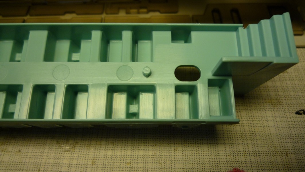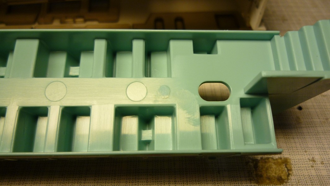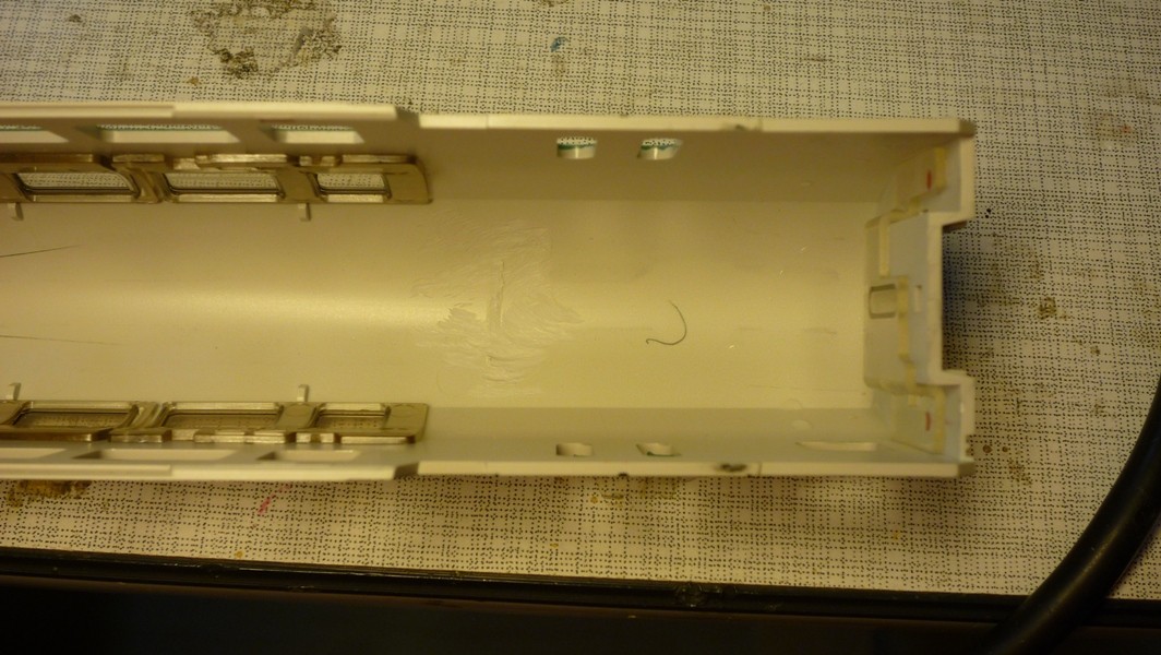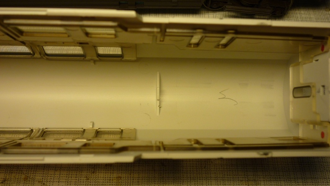 nur zwei Nupsis abgefeilt werden, die sich am Wagendach und auf der Unterseite der oberen Inneneinrichtung