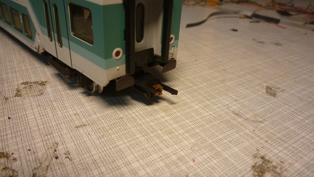 stromführende Kupplungen von Roco entschieden. Die vier Pins werden mit Innenbeleuchtung, Schlusslicht (für