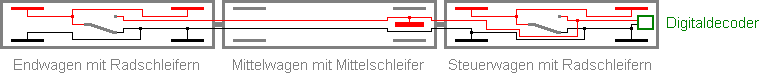 mit einem Mittelschleifer. Dieser Wagen kann im DC Betrieb nicht eingesetzt werden. Wagen mit Radschleifern