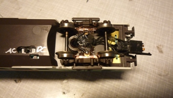 Also nicht wie bei Märklin üblich Stromabnahme über die Achsen. Für den AC Betrieb gibt es einen Mittelwagen