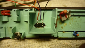 über dem Wagenboden. Rechts davon das monostabile Relais und links neben dem Relais sitzt der Brückengleichrichter.