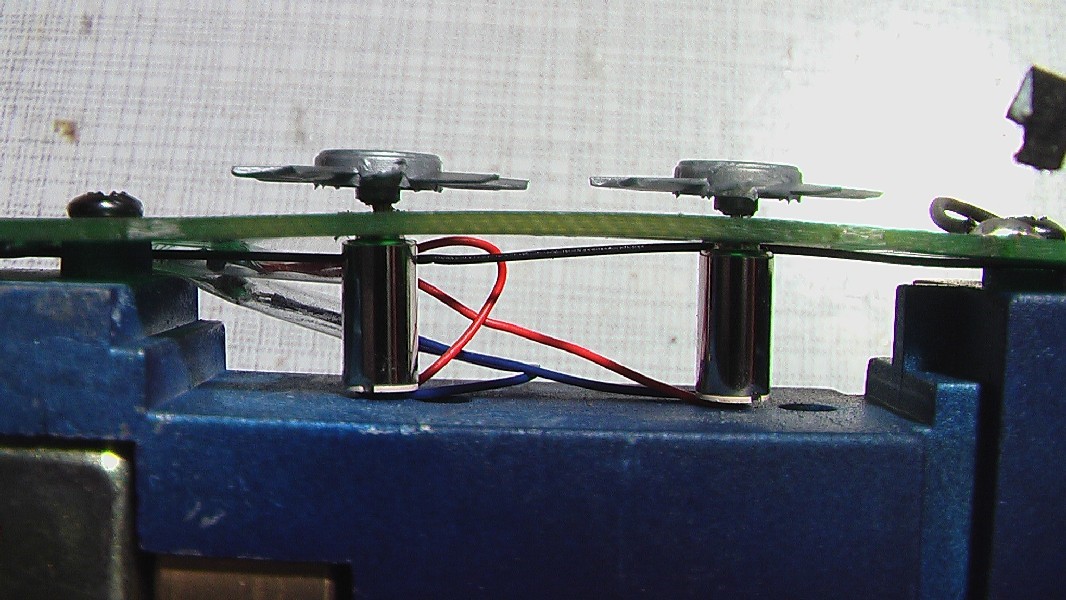 die Leiterplatte wird wieder festgeschraubt. Der Motor wird nun durch den Anpressdruck gehalten. Die Leiterplatte