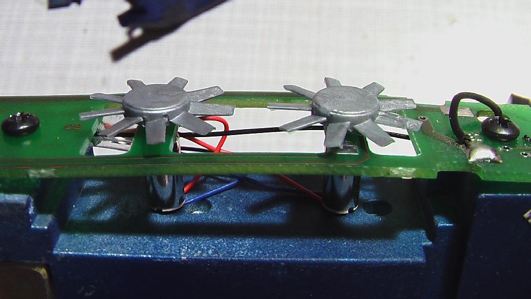 Lüfterräder, die zwar drehbar gelagert, aber natürlich nicht angetrieben sind. Da genau unter den Lüfter