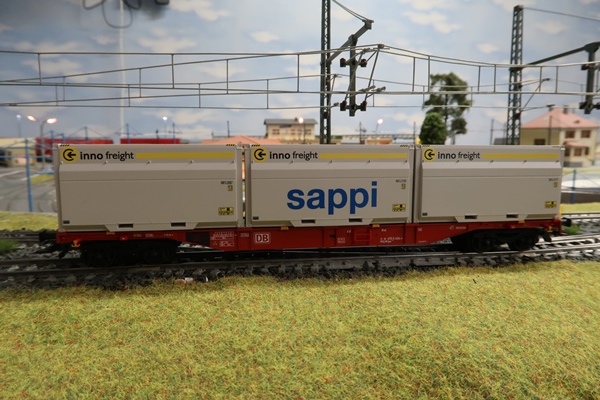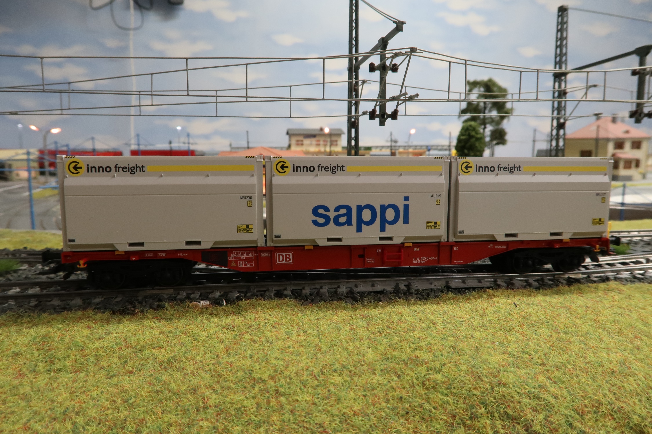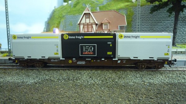 1 vierachsiger Container-Tragwagen mit drei "Innofreight-Containern" von Märklin Nr. 47080.