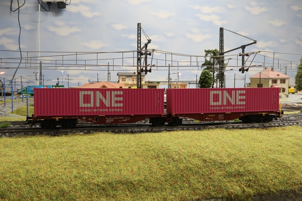 1 sechsachsiges Container-Tragwagen-Paar Typ Sggrss 80 mit zwei "ONE" Containern von Märklin Nr. 47808.