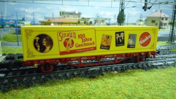 1 zweiachsiger Container-Tagwagen mit einem "Sinalco" Container von Piko Nr. 54889.