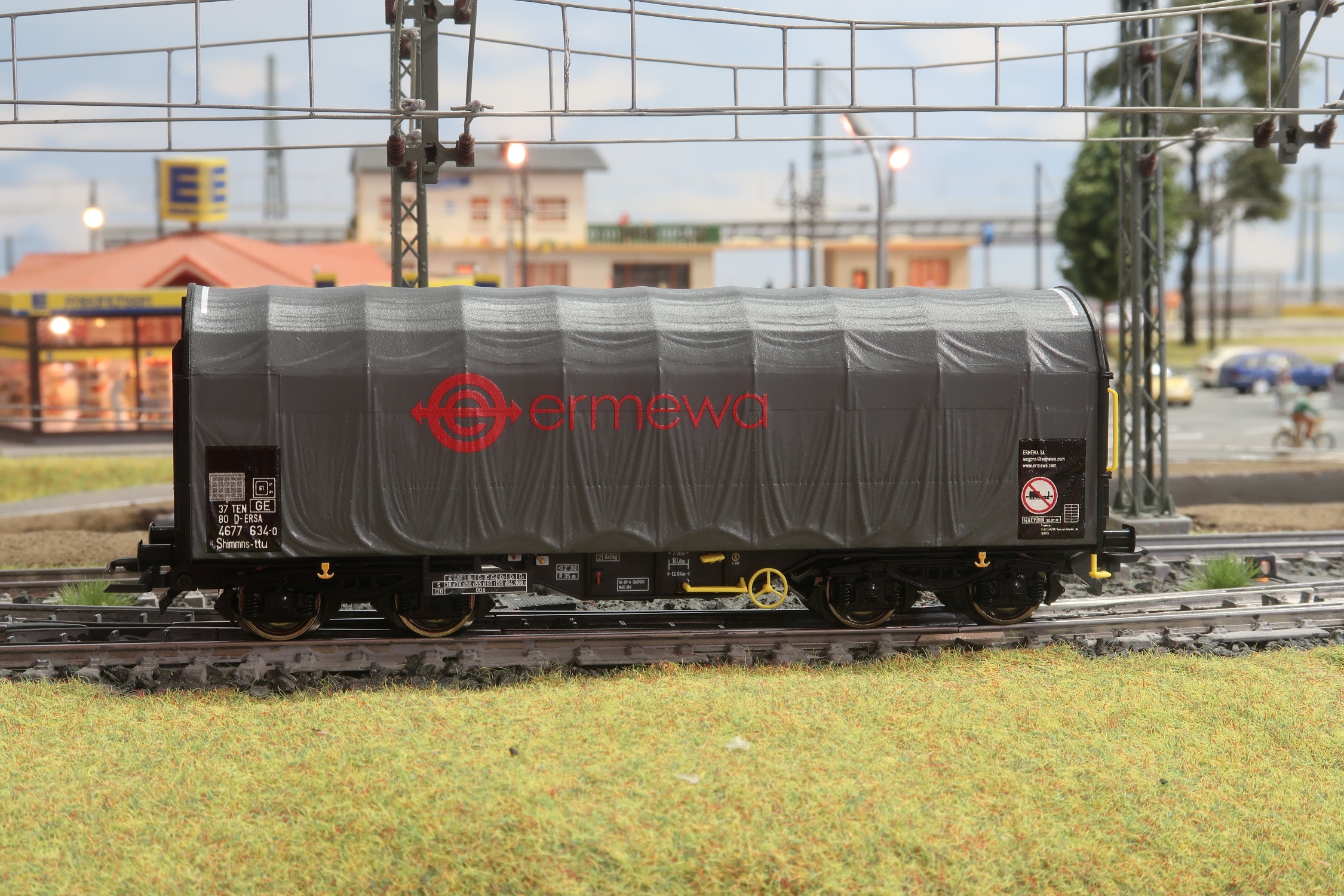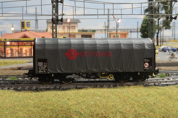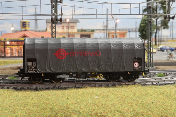 2 vierachsige Schiebeplanenwagen "Ermewa" von Roco Nr. 76039.