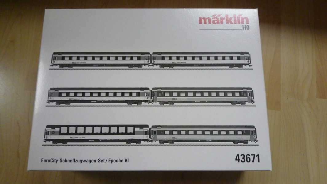Die Wagen werden in einer Umverpackung geliefert, wobei jeder Wagen nochmal einzeln in der typischen Märklin Verpackung