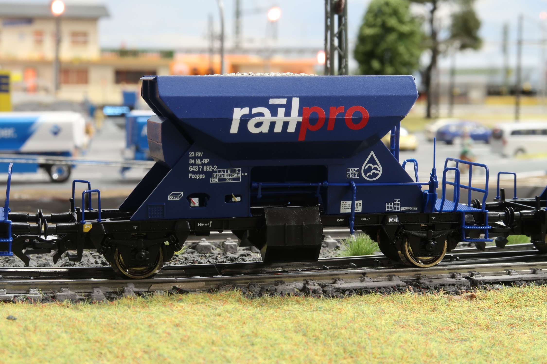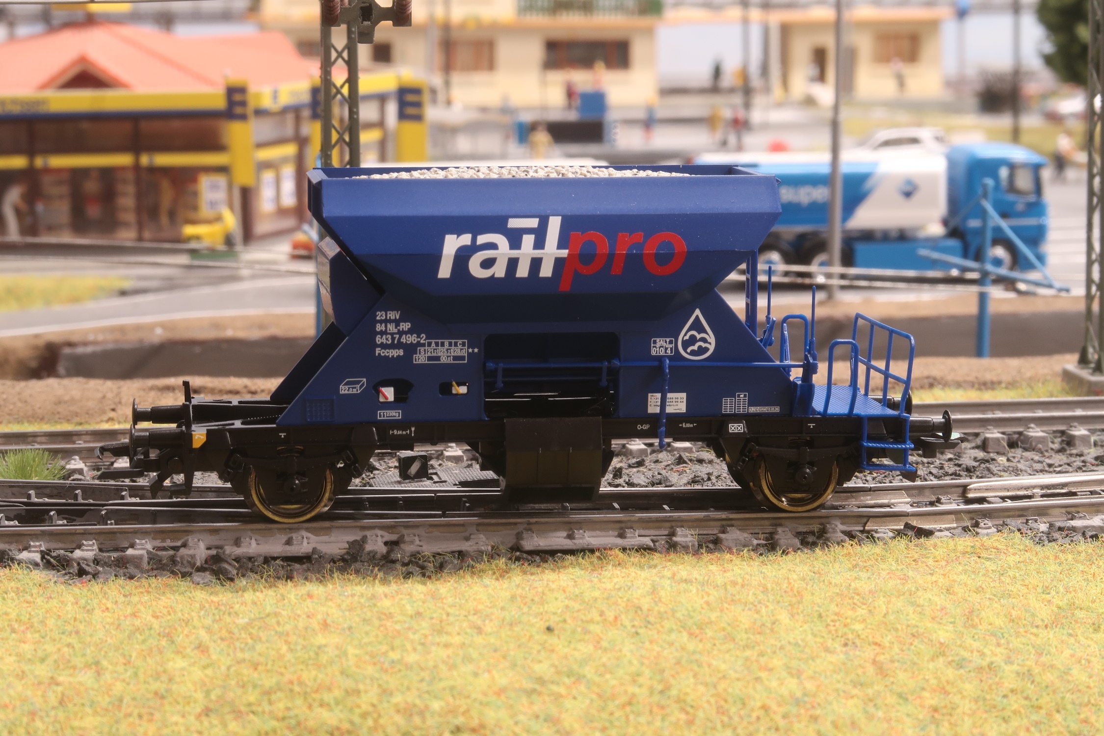 1 vierachsiger Schotterwagen Fccpps "railpro" von Roco Nr. 6600070.
