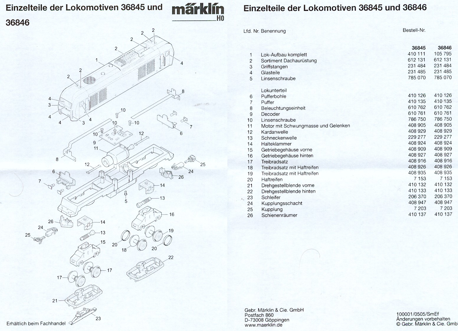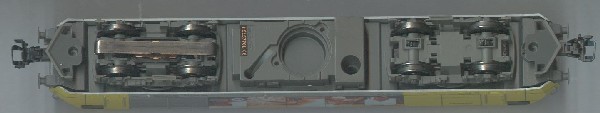 Was sehr gut gelöst wurde ist der Antrieb. Endlich treibt auch Märklin seine Loks über einen mittig gelagerten Gleichstrommotor an, der seine Kraft auf alle vier Achsen überträgt. Ein Drehgestell hat diagonal 2 Haftreifen, wodurch eine sehr gute Zugkraft erreicht wird. Die Lok gleitet so leise über die Gleise, das selbst die angehängten Wagen lauter sind. Der Motor hat eine sehr kleine Anfahrgeschwindigkeit, wodurch man super rangieren kann, außerdem befindet sich auch eine Schwungmasse an der Welle.