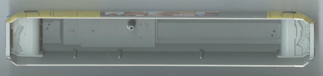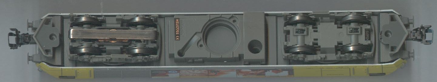 Und Märklin hat vorgesorgt: Eine Aussparung für einen Lautsprecher findet sich zwischen den beiden Drehgestellen. Neben der Lautsprecheraussparung befindet sich die Schraube zum öffnen des Gehäuses.