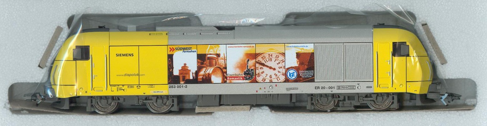 Sieht man den ER 20 (das ER steht für EuroRunner und die 20 für 2000 kW) auf den ersten Blick könnte man meinen, er ist eine ganz "normale" Lok für teures Geld. Auch wenn man die Lok aus der Märklin typischen grauen mit Styropor gepolsterten Verpackung entnimmt, merkt man, dass trotz kleines Preises eine gute Arbeit vollbracht wurde: Die gesamte Lok ist aus Metall, wodurch sie ein gutes Gewicht auf die Schiene bringt um zahlreiche Wagen zu ziehen. Es sind viele Einzelheiten angesetzt wie z.B. Griffstangen. Auch die Lackierung ist sehr gut gelungen. Es wurde sehr aufwendig gedruckt, so dass diese Lok keineswegs in die Spalte "Hobby Lok" passt.