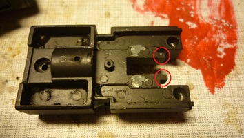 Am Chassis müssen minimale Fräsarbeiten vorgenommen werden. Hier sind lediglich die rot markierten hervorstehenden