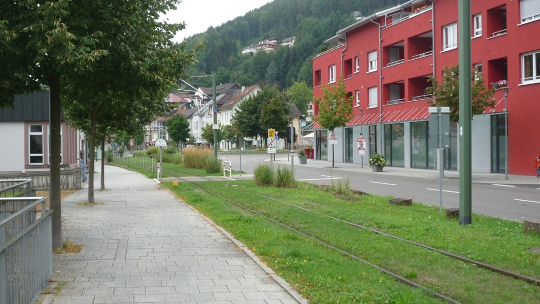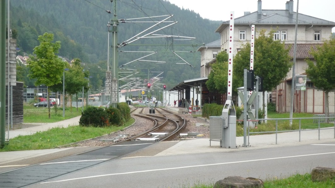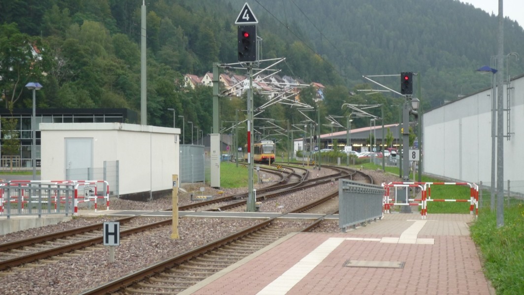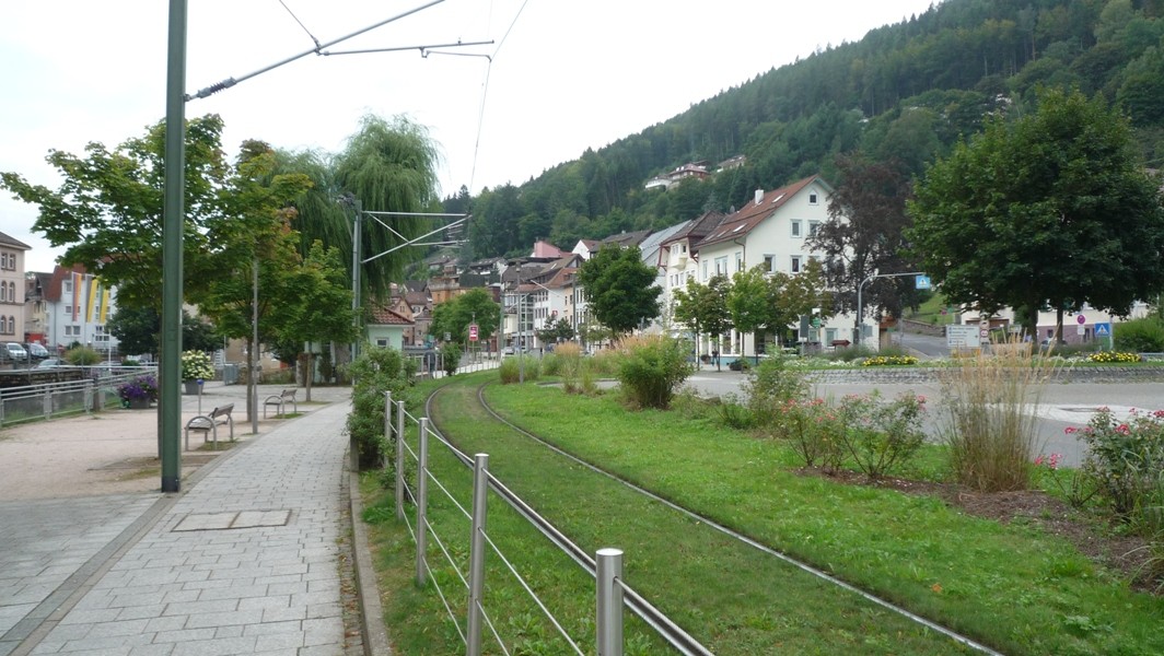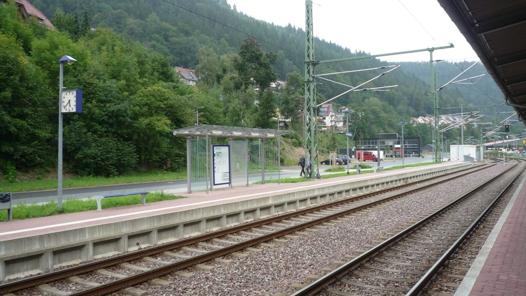 Streckenabschnitt zwischen Bad Wildbad Uhlandplatz und Bad Wildbad Bahnhof.
