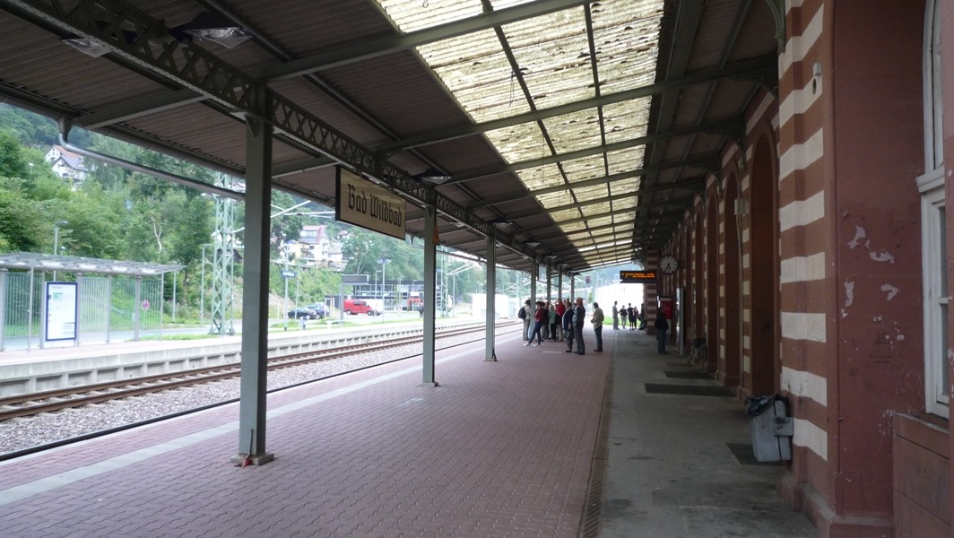 Bad Wildbad Bahnhof liegt an der Enztalbahn und wird von der S 6 der Karlsruher Stadtbahn bedient. Die Züge fahren
