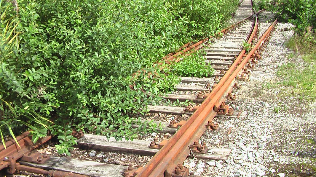 Viel Gras ist mittlerweile über die stillgelegten Gleise gewuchert.