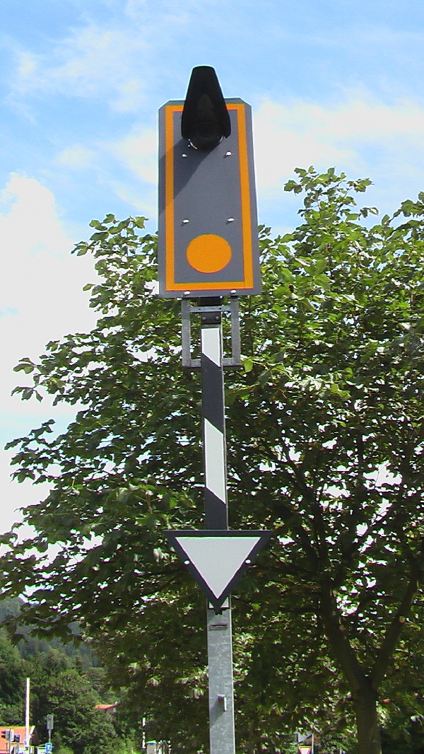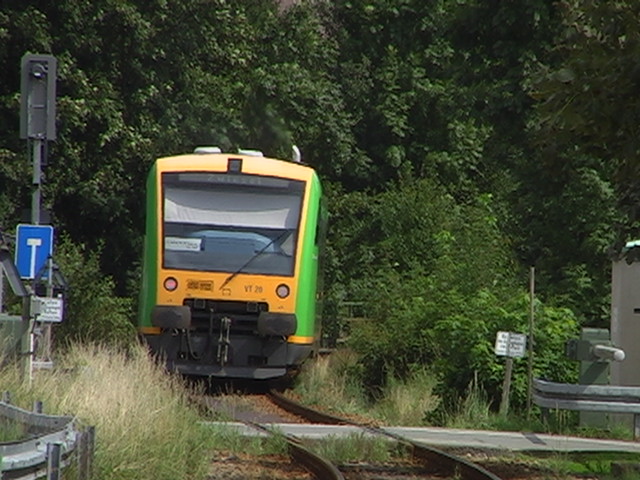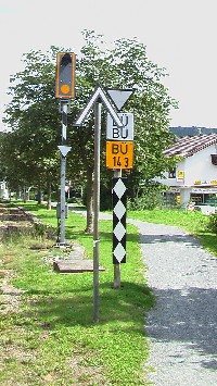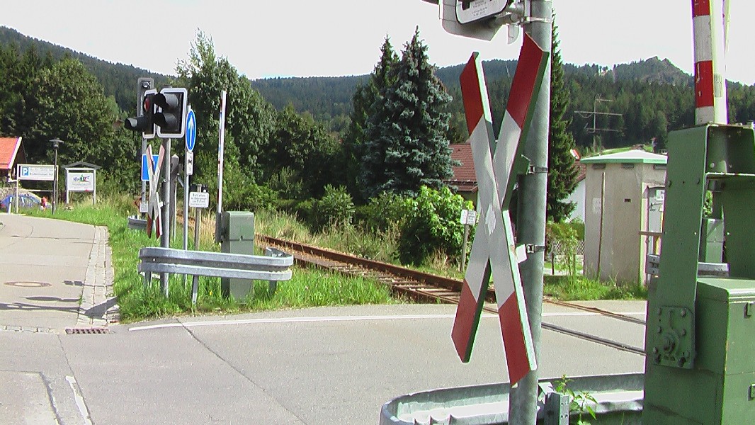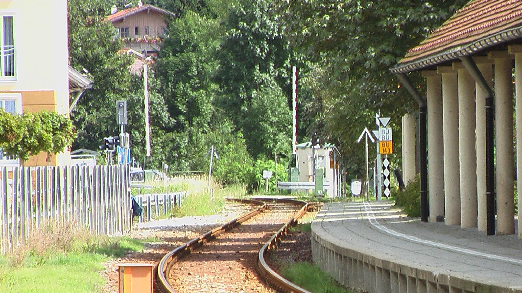 Direkt hinter dem Bahnhof befindet sich nach ein paar hundert Metern ein Bahnübergang.