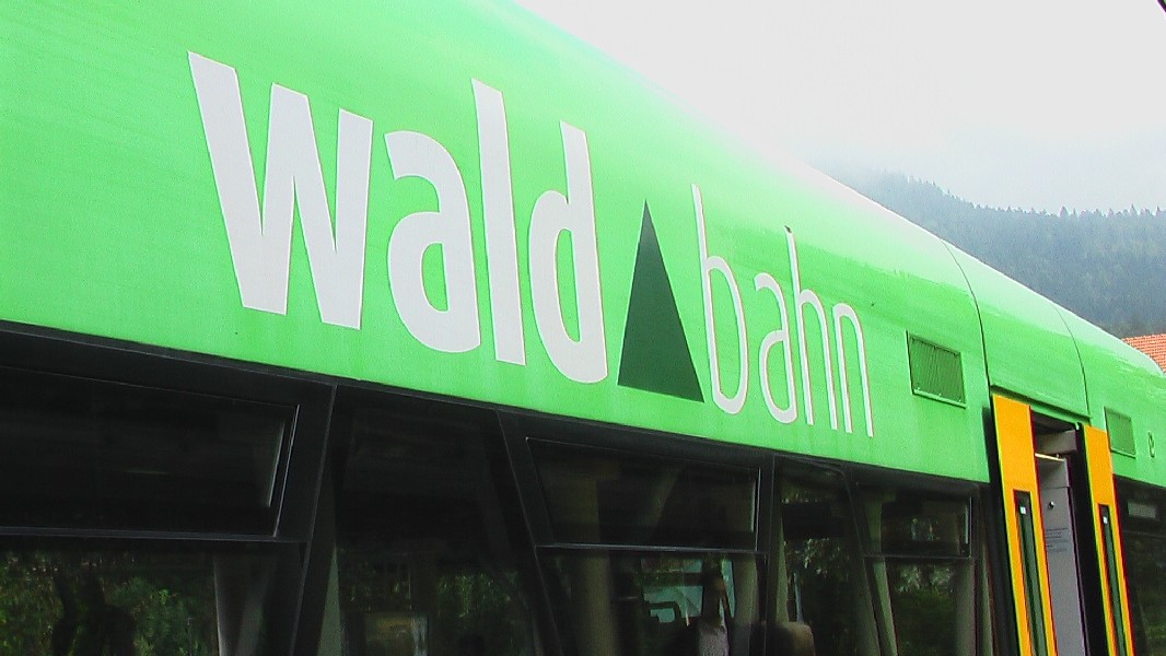 Hier steht ein RegioShuttle der Waldbahn abfahrbereit nach Zwiesel.