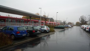 Wie bei nahezu allen neugebauten S-Bahn Stationen gibt es gleich neben dem Bahnhof einen Parkplatz.