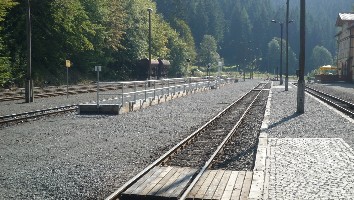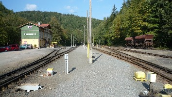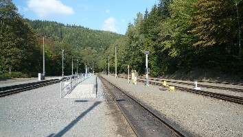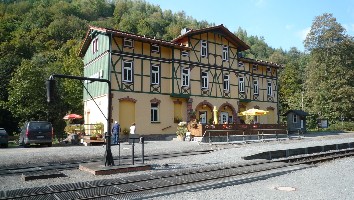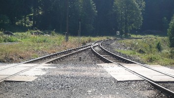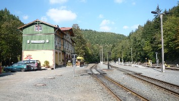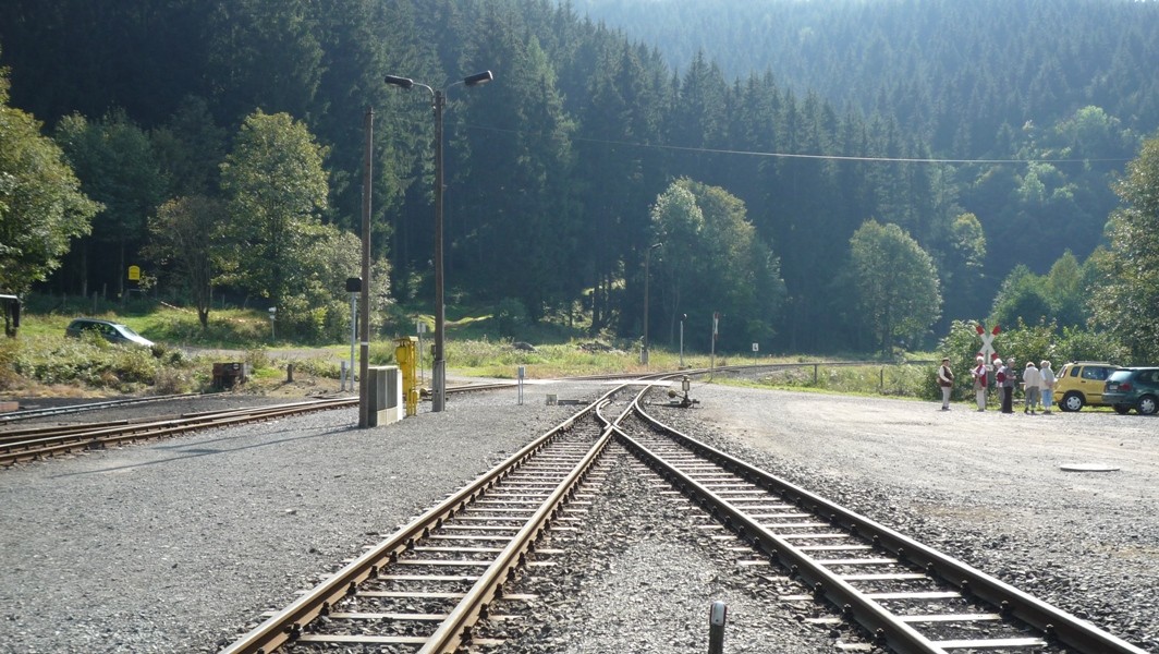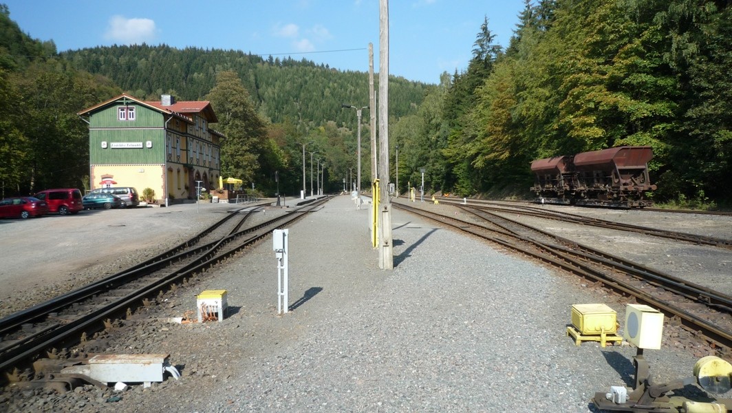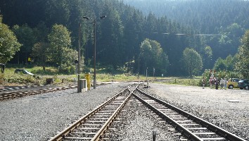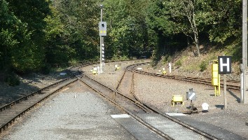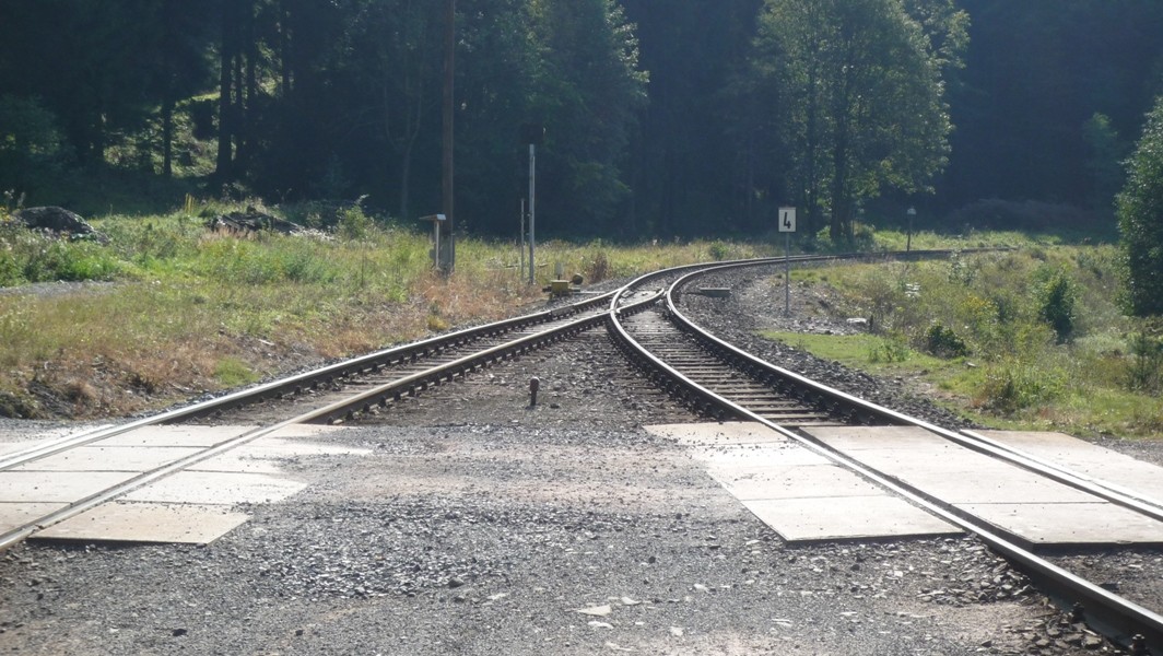 Abzweigung zwischen Harzquerbahn (linkes Gleis) und Selketalbahn (rechtes Gleis).