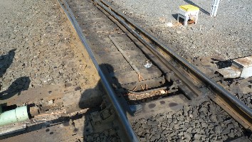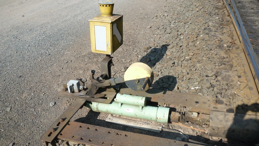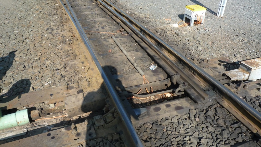 Details einer Rückfallweiche, wie sie an jedem Bahnhof der Harzer Bahnen anzutreffen sind.