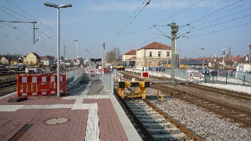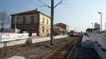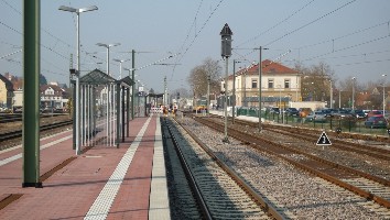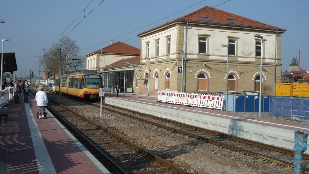 und man ohne Unterführung direkt zum Inselbahnbahnsteig gelangt, um dort in die Karlsruher Stadtbahnen umzusteigen.
