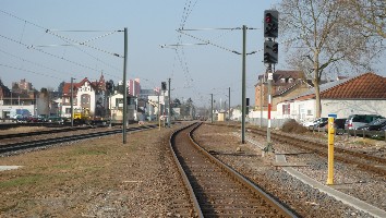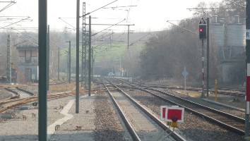 Ausfahrt aus dem Bahnhof Richtung Heilbronn.