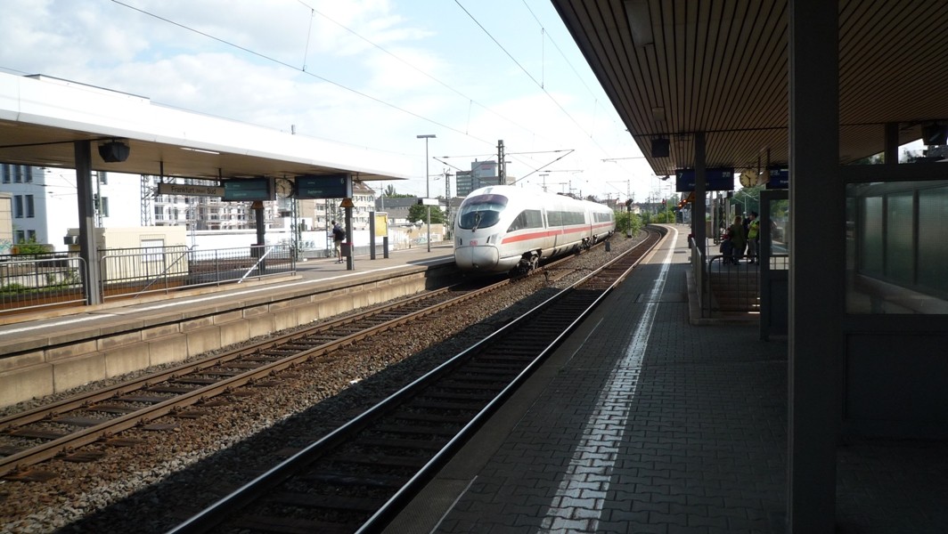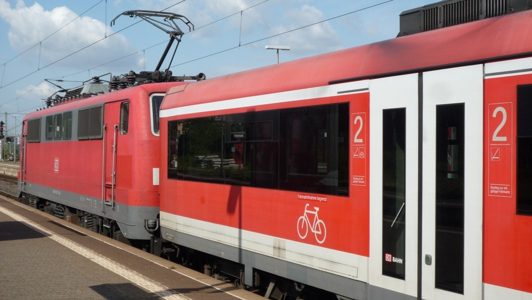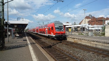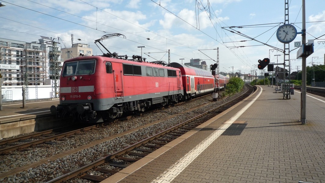 Vom S-Bahnsteig aus fotografierter RE nach Würzburg.