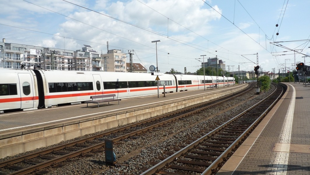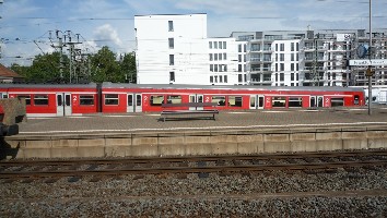 Vom Regionalbahnsteig aus fotografierter ET 420 (Bild ist von 2009). Man sieht, wie steil die Rampe ist.