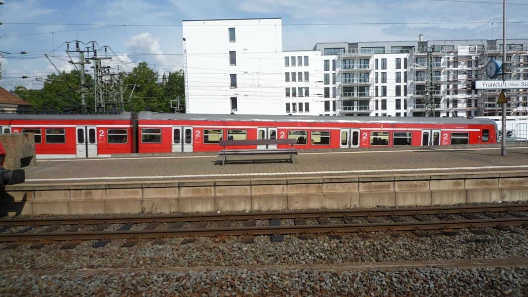 Die S-Bahn Gleise 1 bis 4 von Frankfurt Süd. Die Linien 5 und 6 enden hier, während die Linien 3 und 4 bis Darmstadt bzw. Langen weiterfahren. Daher befindet sich auch in westlicher Richtung eine größere Abstellfläche. Da die Linien 1 und 3 bis 6 komplett mit ET 423 gefahren werden, wird sich in Frankfurt Süd also so schnell kein ET 420 mehr verirren.