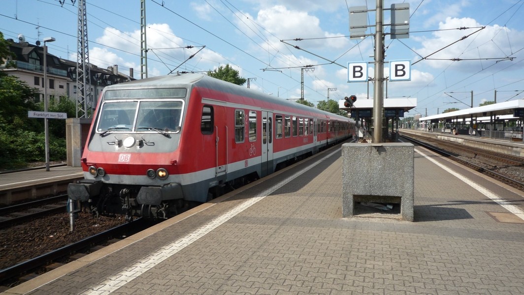 Eine Regionalbahn nach von Frankfurt nach Hanau ist in Frankfurt Süd angekommen.