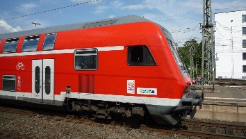 Einfahrender RE nach Fulda mit Doppelstockwagen der Görlitzer Bauart.