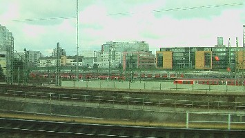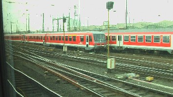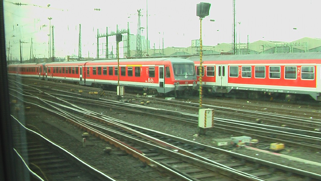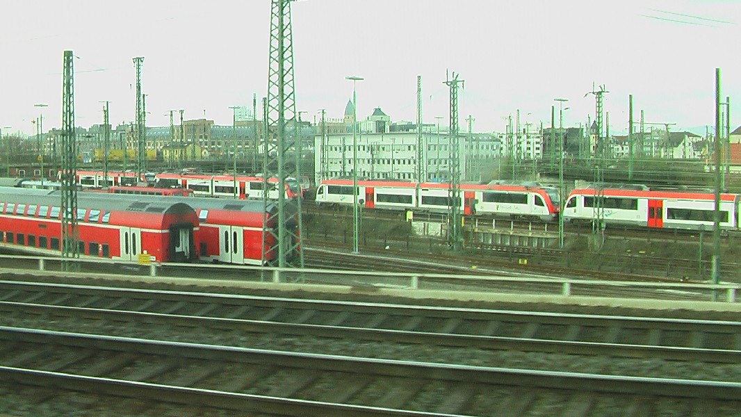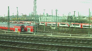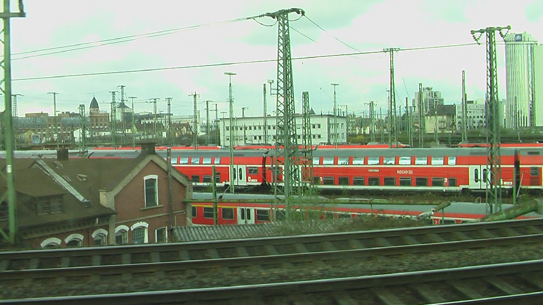 und biegt am Gleisdreieck beim Stadion in Richtung Niederrad ab. Daher kommt man "von hinten" zum Hauptbahnhof und überquert die große Abstellanlage.