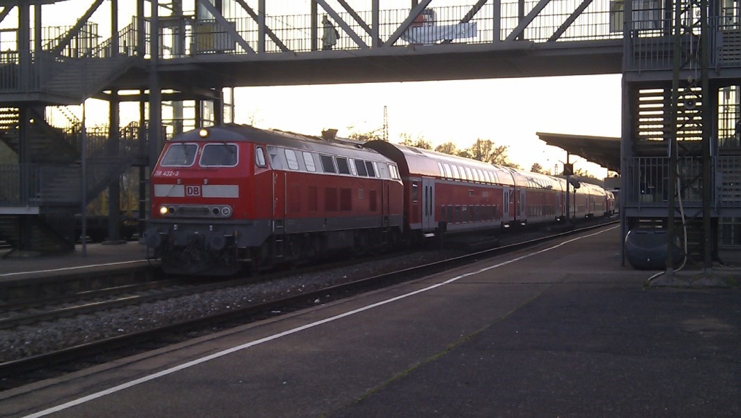 die ab Ulm auf der nicht elektrifizierten Strecke nach Friedrichshafen und weiter nach Lindau fahren, teilweise mit der BR 218