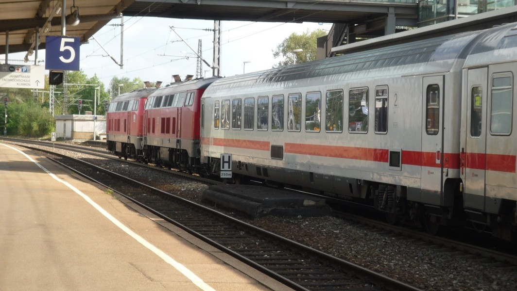 Wie bereits erwähnt sind die IREs teilweise auch mit BR 218 (hier sogar im Sandwich) bespannt. Seit Fahrplanwechsel im