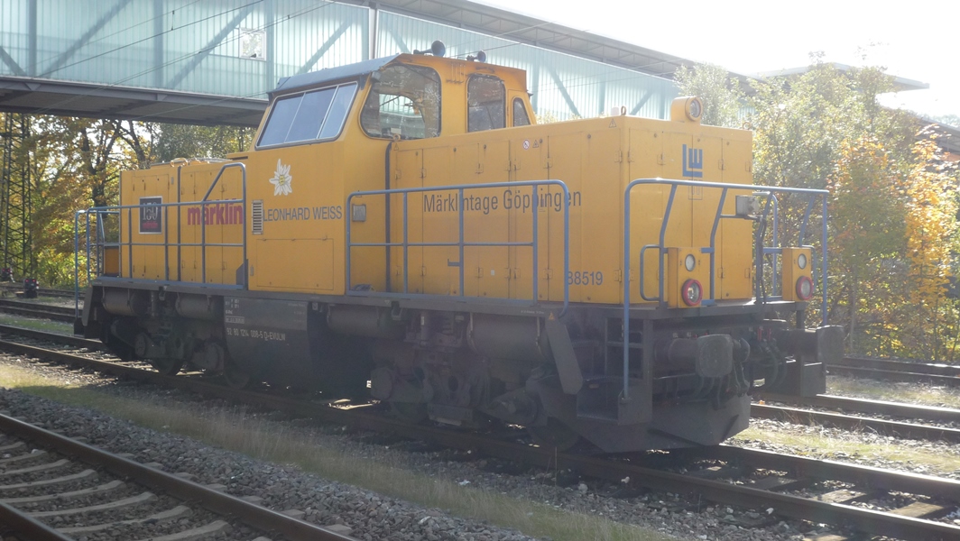 Am 18.10.2013 war eine Diesellok der Baufirma Leonhard Weiss mit Werbung für die Märklin Tage in Göppingen abgestellt.